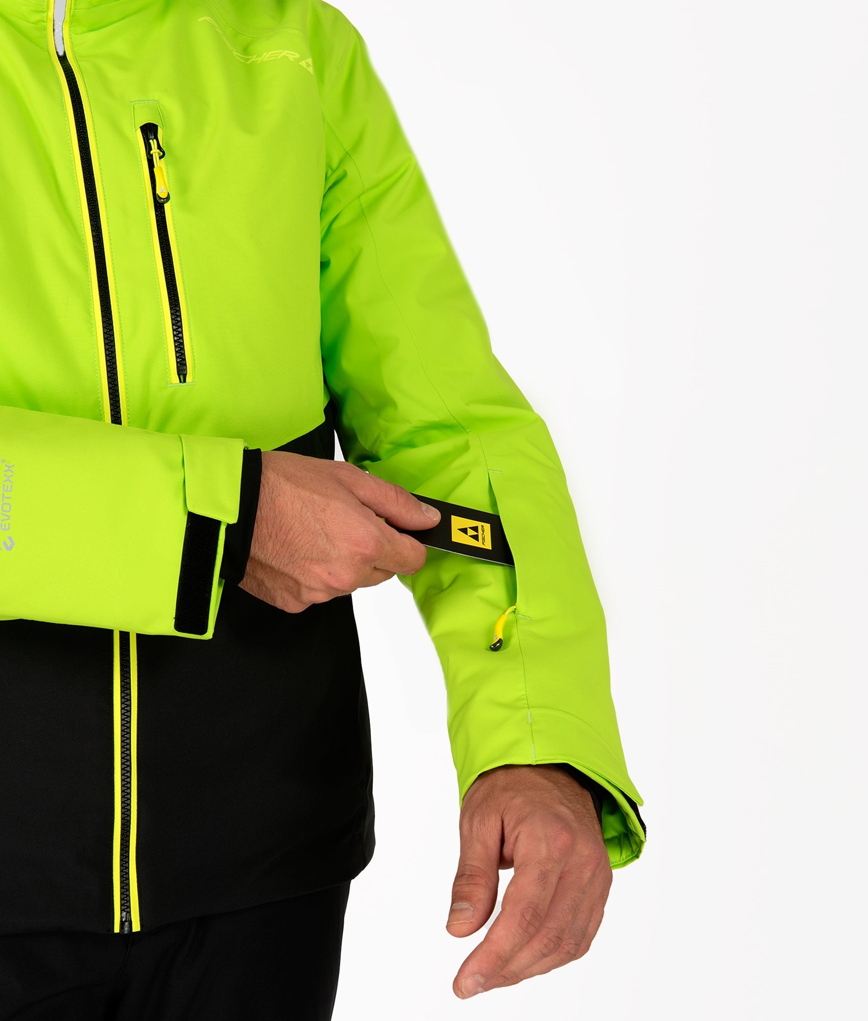 - Hand, chest, ski pass, and inner pocket with zipper